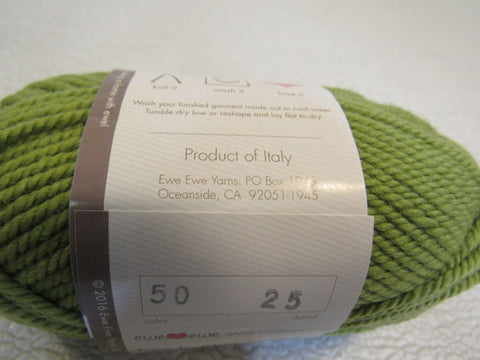 Ewe Ewe Wolly Worsted Yarn Pea Green 1 Skein 95 Yards 100% Fine Merino Wool -- New