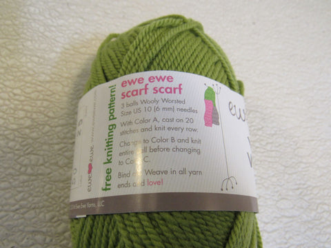 - Ewe Ewe Wolly Worsted Yarn Pea Green 1 Skein 95 Yards 100% Fine Merino Wool.