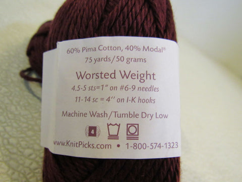 - Knit Picks Shine Worsted Yarn Currant 2 Skeins 75 Yards Each.