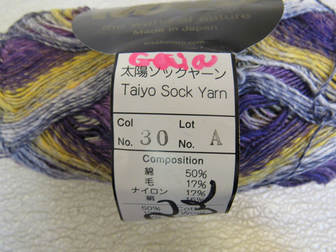 • Noro Taiyo Sock Yarn Multicolored 1 Ball 470 Yards Purple/Gold/Gray.