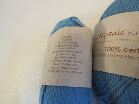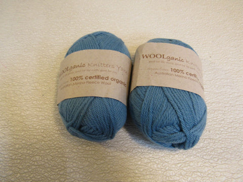 Woolganic Certified Organic Knitters Yarn Raindrop 2 Skeins 113 Yards Each Blue -- New