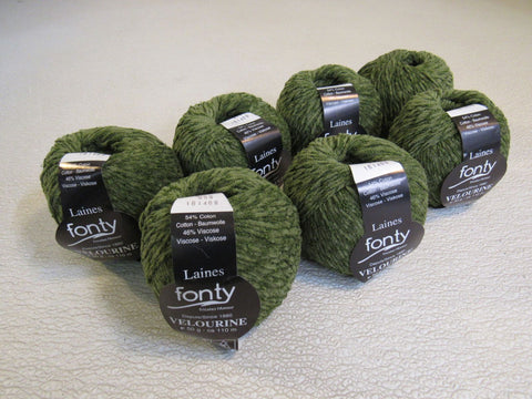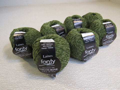 - Laines Fonty Velourine Yarn Pea Green 7 Balls 120 Yards Each.