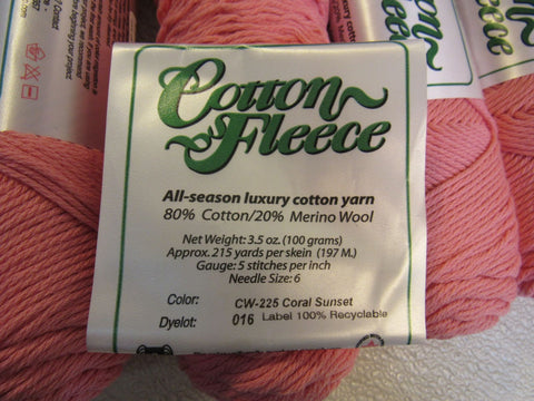 - Brown Sheep Co Cotton Fleece Yarn Coral Sunset 4 Skeins 215 Yards Each Very Soft.