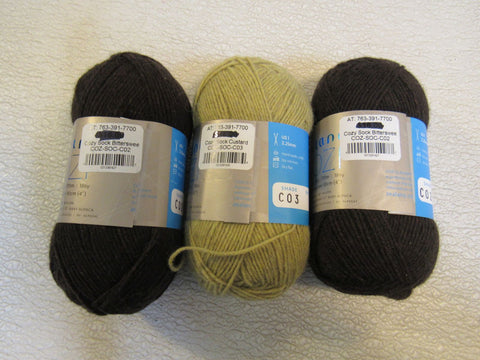 - Zealana Cozi Cozy Sock Yarn 3 Skeins 186 Yards Each Brown/Dark Beige.
