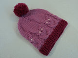 Handcrafted Knitted Baby Hat Pink/Cranberry Pom Pom 100% Wool Female 6-12 months -- New No Tags