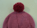 • Handcrafted Knitted Baby Hat Pink/Cranberry Pom Pom 100% Wool Female 6-12 months.