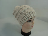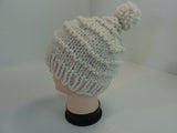 - Handcrafted Knitted Beanie Hat Cream Pom Pom Slouchy Wool Acrylic Female Adult.
