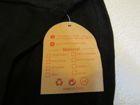 • BingPet Pet Shirt Black/White Security XXL Polyester Cotton -- New