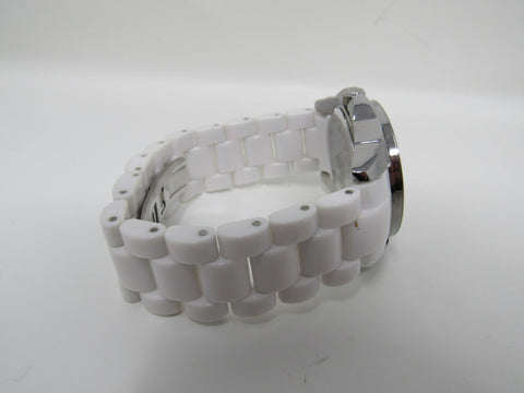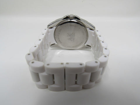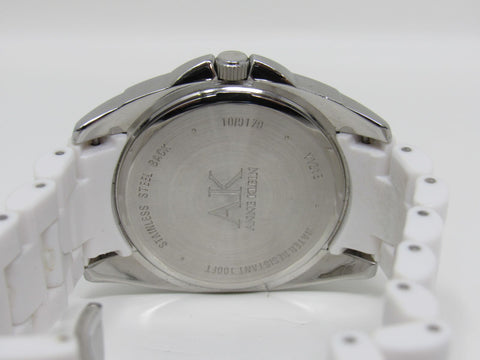 Anne Klein Watch Silver/White Oyster Bracelet Band Clear Gemstones Female Adult -- Used