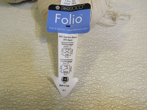 - Berroco Folio Yarn Cream Pima Poo 3 Balls 219 Yards Each.