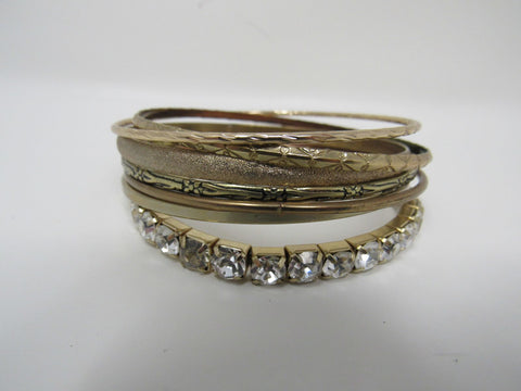 Designer Bangle Bracelet Set of 7 Gold Clear Gemstones Female Adult -- Used