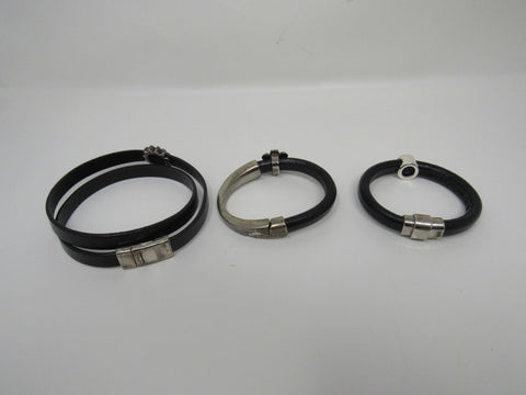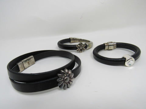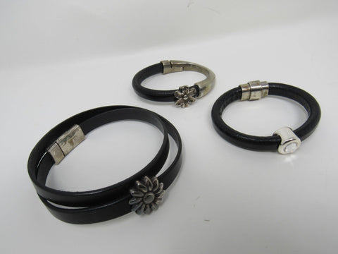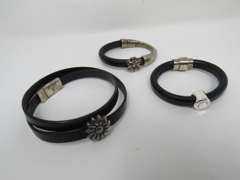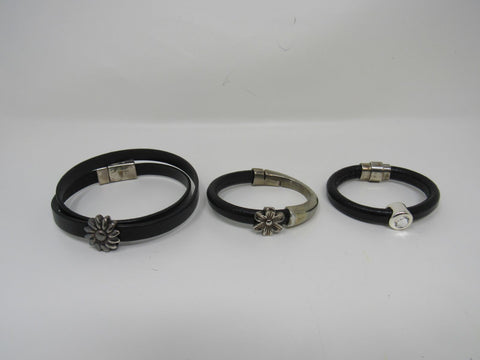 Designer Bangle Bracelets Set of 3 Black/Silver Flower Design Female Adult -- Used