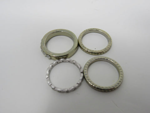 Designer Fashion Rings Lot of 4 Silver/Gold Small Clear Gems Female Adult Size 7 -- Used