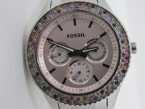 - Fossil Watch Silver/Pink Oyster Bracelet Band Female Adult.