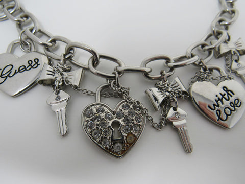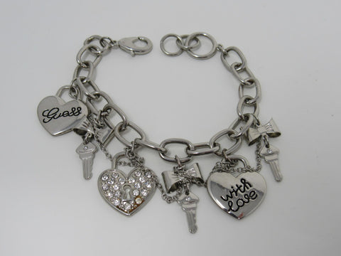Guess Charm Chain Link Bracelet Love & Hearts Silver Female Adult -- Used