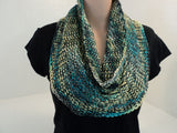 - Handcrafted Knitted Cowl Wrap Teal/Yellow/Gray Textured 100% Merino Silk Female.