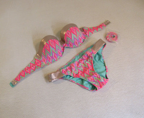 Shade & Shore Bandeau Bikini Padded Push Up 36C Female Adult Size 34C Geometric -- Used