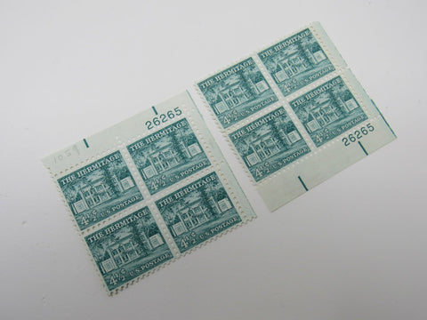 USPS Scott 1037 Vintage 4-1/2c The Hermitage Plate Block Lot of 2 VF (Very Fine) -- New