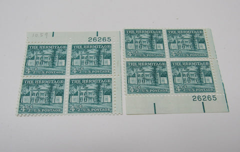 - USPS Scott 1037 Vintage 4-1/2c The Hermitage Plate Block Lot of 2 VF (Very Fine).