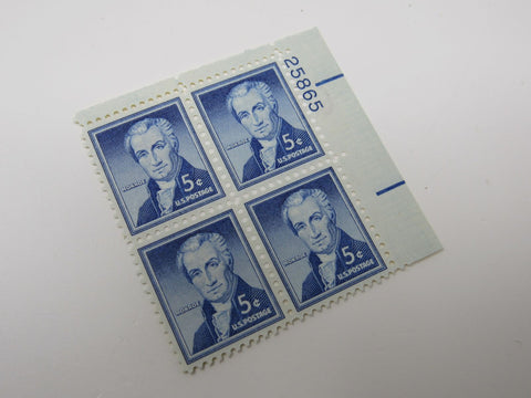- USPS Scott 1038 Vintage 5c James Monroe Plate Block Mint Never Hinged/MNH.