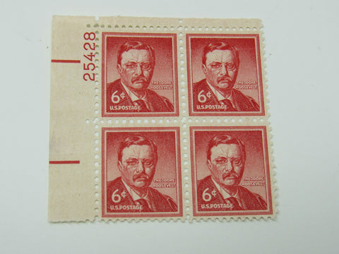 - USPS Scott 1039 Vintage 6c Theodore Roosevelt Plate Block Mint Never Hinged/MNH.
