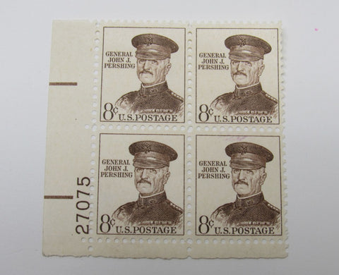 - USPS Scott 1214 Vintage 8c General John J Pershing Plate Block.