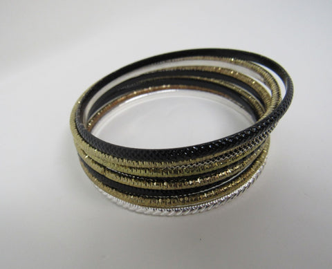 Designer Bangle Bracelet Set of 9 Gold/Black/Silver Female Adult -- Used