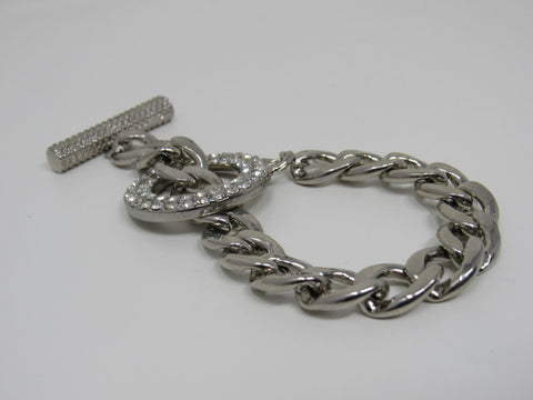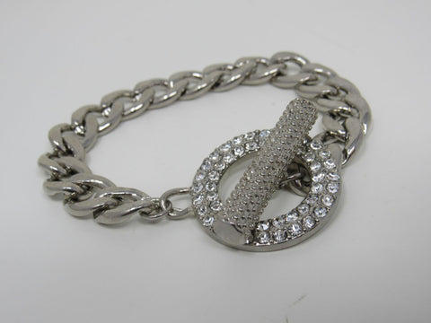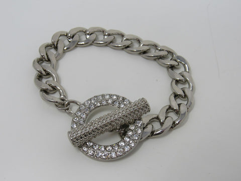 Designer Chain Link Bracelet Silver Clear Gemstones Female Adult -- Used