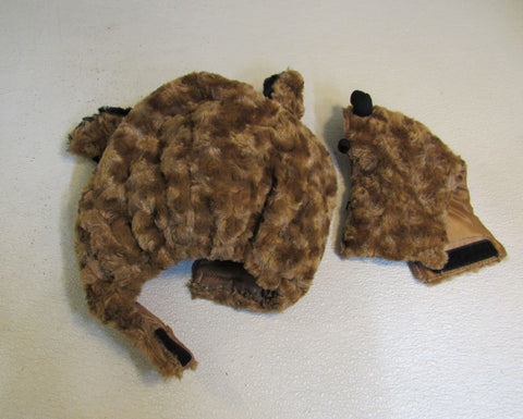 - Designer Kids Costume Head Brown/White/Black Furry Velcro Fasten.