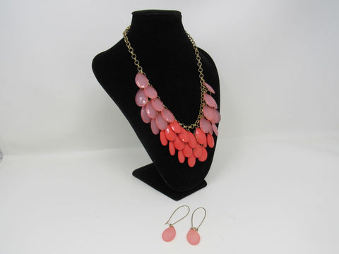Designer Matching Statement Necklace and Earrings Coral/Gold Female Adult -- Used