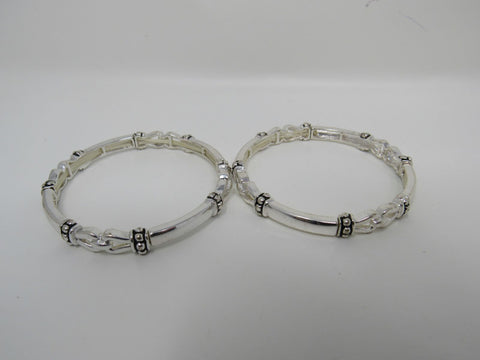 Designer Stretch Bangle Bracelet Set of 2 Silver Female Adult -- Used