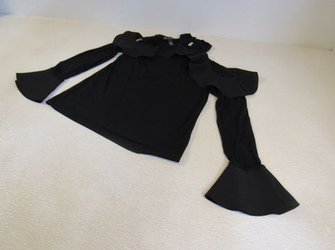 INC Blouse Black Bell Sleeves Open Shoulder Female Adult Size M Solid -- Used