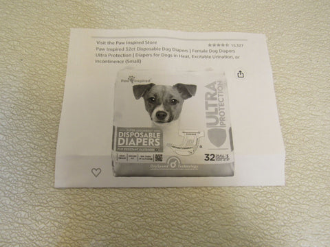 - Paw Inspired Disposable Female Dog Diapers Lot of 23 White Small 14-in to 19-in.