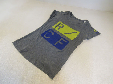 Reebok T Shirt Gray/Blue/Yellow CrossFit Female Adult Size M Solid -- Used