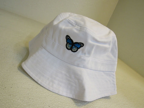 Tangka Beach Bucket Hat Embroidered Blue Butterfly White Female -- New