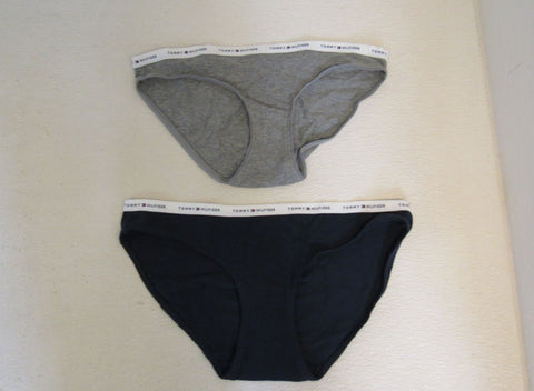 Tommy Hilfiger Brief 2 Pack 1 Gray 1 Navy Bikini Cut Cotton Female Size L -- New