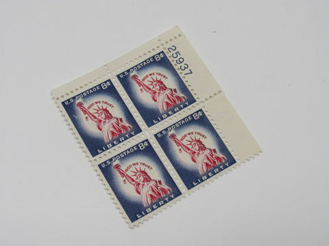 USPS Scott 1042 Vintage 8c Statue of Liberty Plate Block Mint Never Hinged/MNH -- New