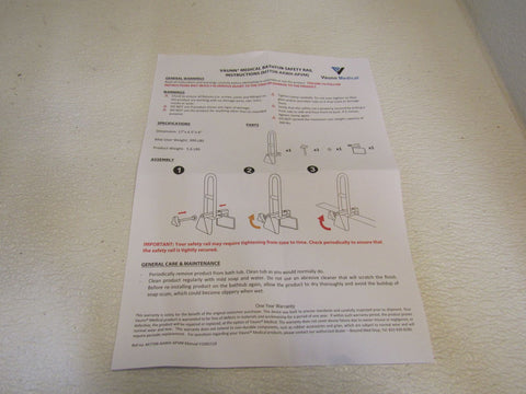 Vaunn Medical Bathtub Safety Rail Shower Grab Bar White Max User Weight 300-lbs -- New